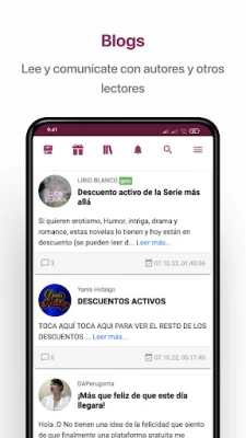 La experiencia con Booknet va más allá de la simple lectura. Hemos diseñado una interfaz intuitiva para que cada momento sea cómodo y emocionante, permitiéndote incluso crear tu propia colección de libros digitales para disfrutar sin conexión a internet. Además, impulsamos la creatividad literaria a través de concursos con valiosos premios, incentivando la aparición de más relatos cautivadores. Aquí, la lectura es una aventura interactiva: acompaña a los escritores en tiempo real mientras publican sus obras capítulo a capítulo, comenta sus avances y recibe respuestas directas, forjando una conexión genuina con tus autores favoritos.