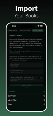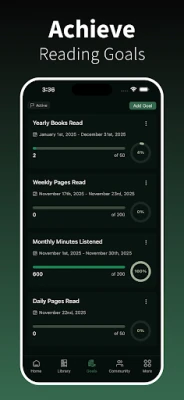 BookPine te acompaña en cada formato, registrando tanto páginas leídas como minutos de audiolibro en un único lugar flexible. Establece y supera tus metas de lectura, ya sean por volumen, tiempo o autor, personalizándolas semanal, mensual o anualmente. La migración es sencilla gracias a la importación desde plataformas populares como Goodreads y StoryGraph, y la adición de nuevos títulos es instantánea con el escaneo de ISBN. Para tu tranquilidad, BookPine también permite que ciertas lecturas permanezcan privadas, visibles solo para ti. Y cuando desees preservar o compartir tu recorrido, exporta tu biblioteca completa o tu diario con un solo toque.
