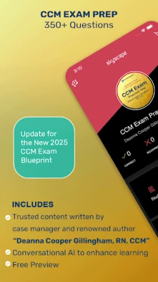 Diseñada meticulosamente para el gestor de casos ambicioso, la **CCM Exam Practice Test App** es su herramienta esencial para conquistar el examen de certificación CCMC. Desarrollada por el **Case Management Institute** y basada en el blueprint oficial de la Commission for Case Manager Certification (CCMC), esta aplicación proviene directamente del creador de la guía de estudio líder, "CCM Certification Made Easy". Sumérjase en un universo de más de 350 preguntas de alta calidad, cuidadosamente estructuradas para reflejar el formato y la profundidad del examen real, incluyendo una prueba práctica completa de 150 preguntas actualizada al blueprint más reciente.