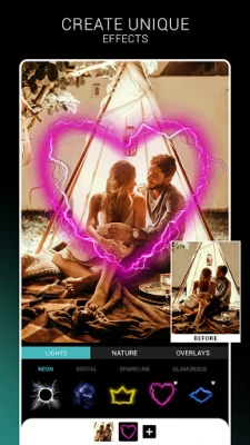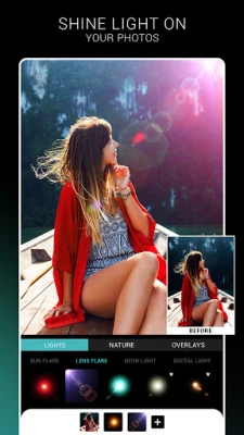 Transforma tus imágenes ordinarias en obras de arte vibrantes y dinámicas con efectos de luz espectaculares. Descubre un universo de posibilidades creativas que te permitirán añadir un toque mágico y profesional a cada fotografía. Esta herramienta te ofrece una colección cuidadosamente seleccionada de destellos de lente, fugas de luz y brillos que puedes aplicar sin esfuerzo para realzar la belleza oculta de tus momentos capturados, elevando su impacto visual a niveles sorprendentes.