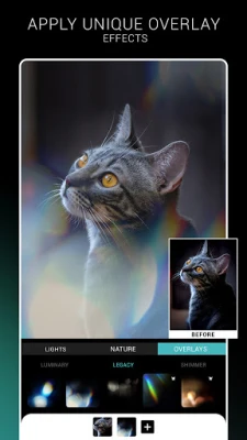 La facilidad de uso es primordial. Con una interfaz sencilla e intuitiva, podrás seleccionar tu imagen, aplicar filtros y añadir uno o varios efectos con solo unos toques. Ajusta la posición, escala y personaliza el brillo y el color mediante controles deslizantes precisos que te brindan total libertad creativa para iluminar tu visión. Disfruta de una vista previa en tiempo real de tus ediciones y, una vez satisfecho, guarda tu creación o compártela instantáneamente en tus redes sociales favoritas para mostrar tu visión artística al mundo.