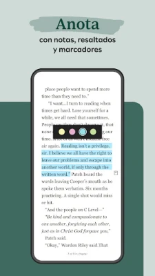 La aplicación Kobo transforma tu dispositivo en un portal de descubrimiento. Explora sin esfuerzo nuestra creciente diversidad de obras, buscando por autor, tema o género para desvelar tu próxima gran pasión. Benefíciate de recomendaciones pensadas exclusivamente para ti, sumérgete en miles de previsualizaciones de eBooks o escucha muestras de audiolibros, y no te pierdas nuestra selección de títulos gratuitos o los más populares, actualizados constantemente. Personaliza tu lectura con fuentes y tamaños a tu gusto, elige el Modo Nocturno para una comodidad visual superior y ajusta la pantalla a tu preferencia, mientras que nuestro reproductor de audiolibros, intuitivo y elegante, te asegura una escucha fluida, siempre recordando tu último punto y permitiendo programar el apagado para esos momentos de relax.