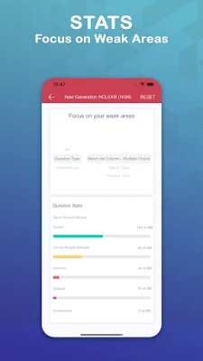Explore diez capítulos de preguntas estilo NGN, cada uno integrado con el modelo de Medición de Juicio Clínico (NCJMM) del NCSBN. La aplicación presenta escenarios de casos inmersivos que desarrollan progresivamente las seis habilidades cognitivas esenciales del juicio clínico, a través de estudios de caso independientes y evolutivos. Cada ítem de práctica está acompañado de una estrategia detallada para la resolución de pruebas, brindándole las claves para analizar y discernir la opción correcta, no solo memorizar respuestas.